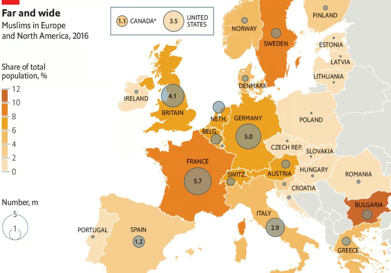 On compte cinq pays à majorité musulmane sur le continent européen : l'Albanie, l'Azerbaïdjan, la Bosnie-Herzégovine, le Kosovo et la Turquie.